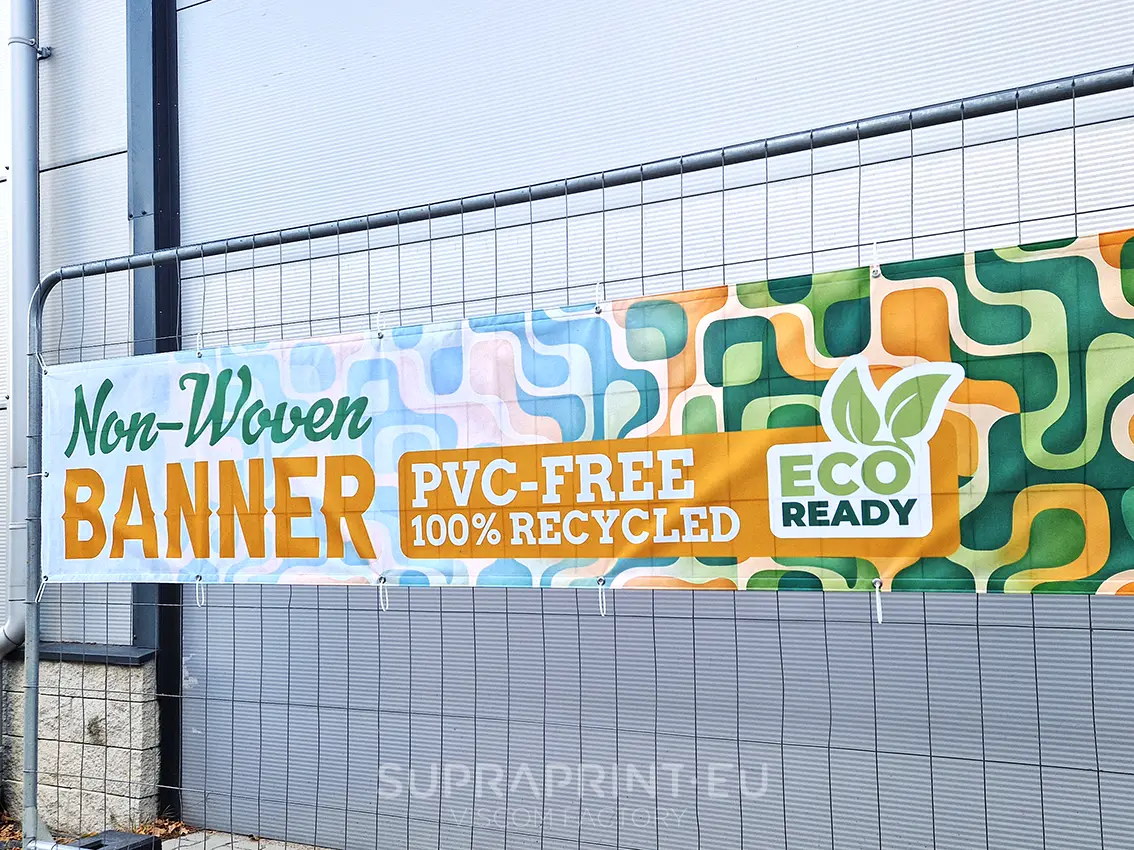 Outdoor-Vliesbanner, bedruckt mit recyceltem Material.