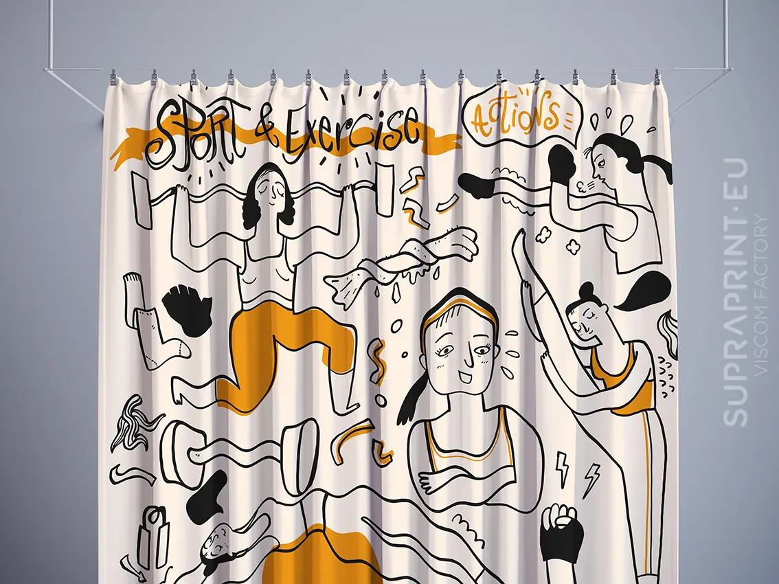 Wasserdichtes Gewebe – perfekt für Duschvorhänge in Fitnessclubs und Sportvereinen.