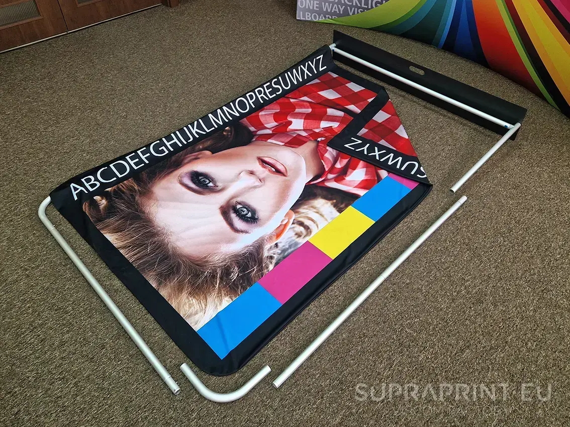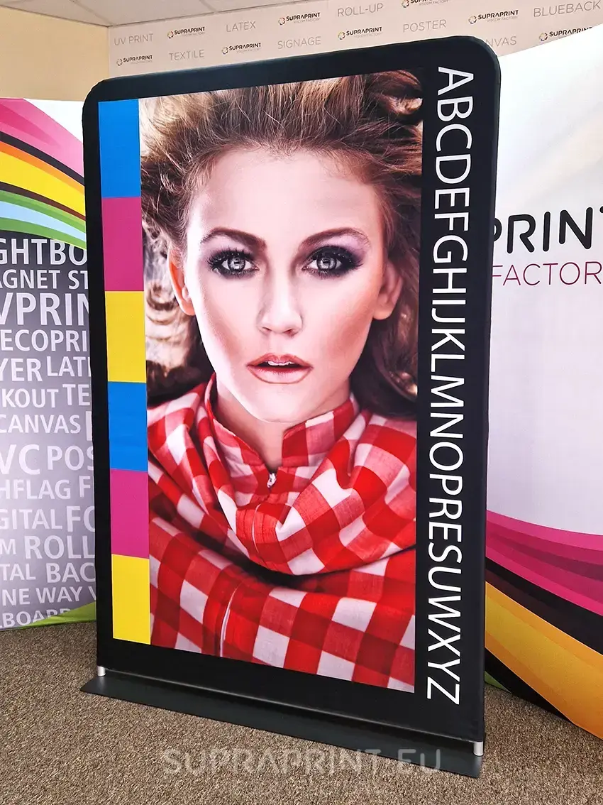 Werbeständer mit auf Stoff gedruckten Grafiken